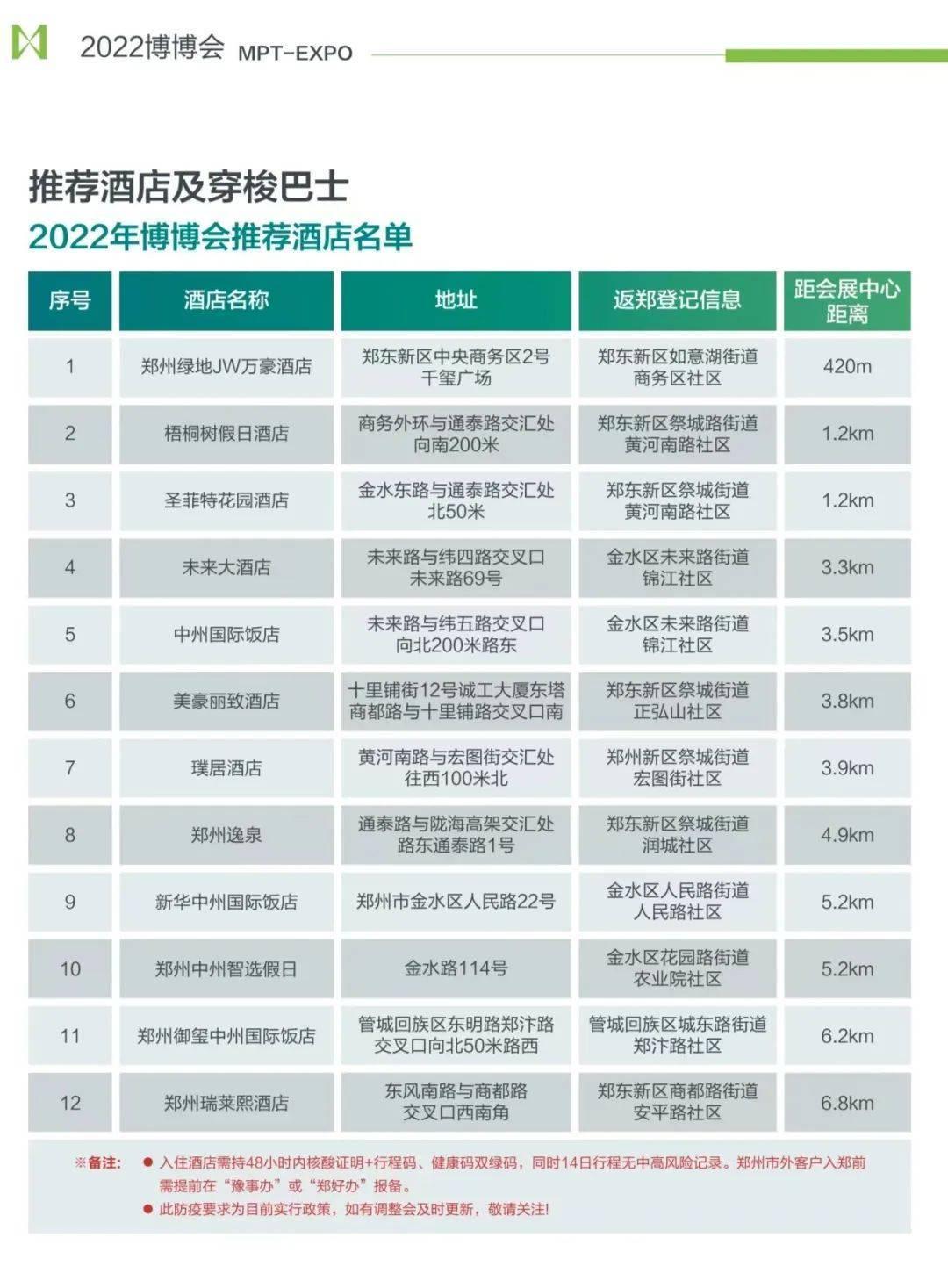 为便于大家参加“博博会”期间的相关活动,所有入住组委会推荐酒店的参会人员,可在以下2个时段在12家推荐酒店内进行核酸检测: