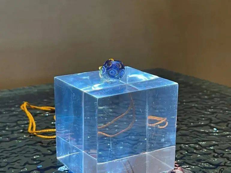 琉璃簪通体呈湖蓝色,簪头为梅花。宋代,玻璃制作工艺已经相当完善,几乎可以制作任何饰品,这使得普通人家也能使用琉璃簪,有了“天下尽琉璃”的流行局面。