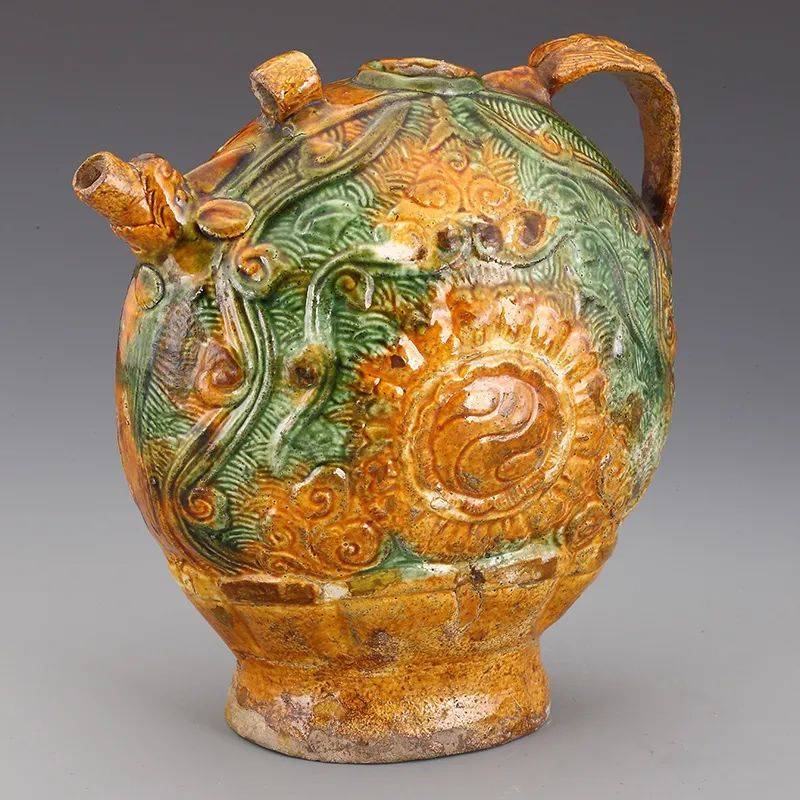 三彩釉印花太极图执壶