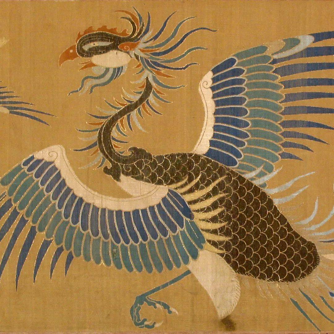 这件文物便是元代织锦工艺中的杰出作品,它不仅使用多色丝线,还加入了金线和孔雀羽线进行织造,十分珍贵!共有两组连续的图案,以凤鸟为主体,零散分布着其他鸟类,花卉。鸟类造型优美,配色华丽,织造技术高超,是元代织锦的精品!