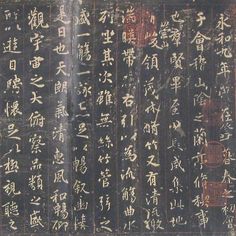 我们面前的这件作品是兰亭序的宋代拓本。提到兰亭序,想必大家并不陌生,它是东晋书圣王羲之于会稽山下以文会友,畅饮美酒后写出的“天下第一行书”。
