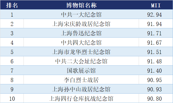 从博物馆类型看,行业类博物馆的得分普遍不低。它们是各行业发展的历史记录簿,上海玻璃博物馆(第3位)、上海汽车博物馆(第7位)等行业主题类博物馆保持了自身品牌特色,以垂直个性化的内容吸引众多爱好者,彰显出上海这座城市厚重的产业底蕴。