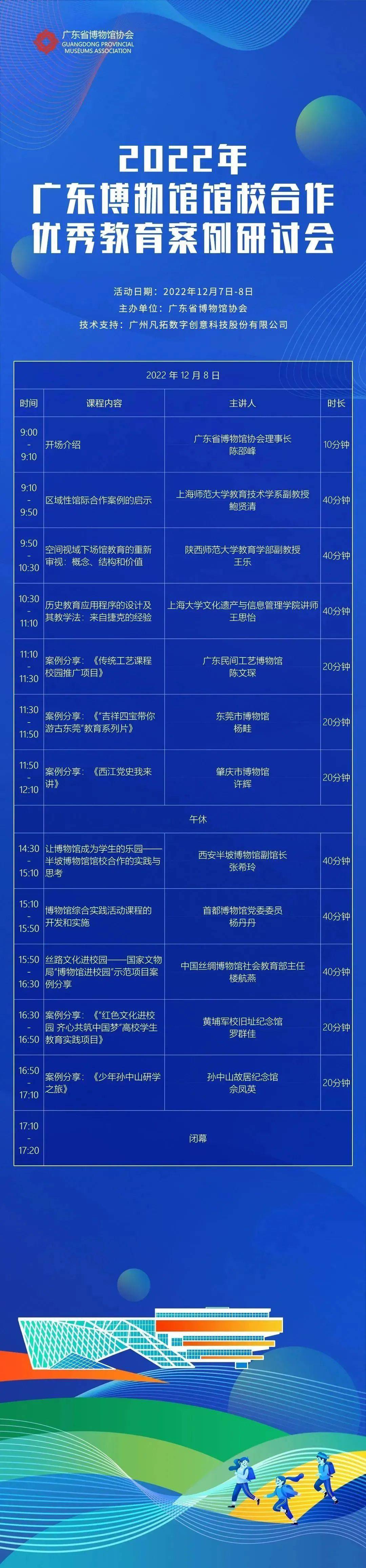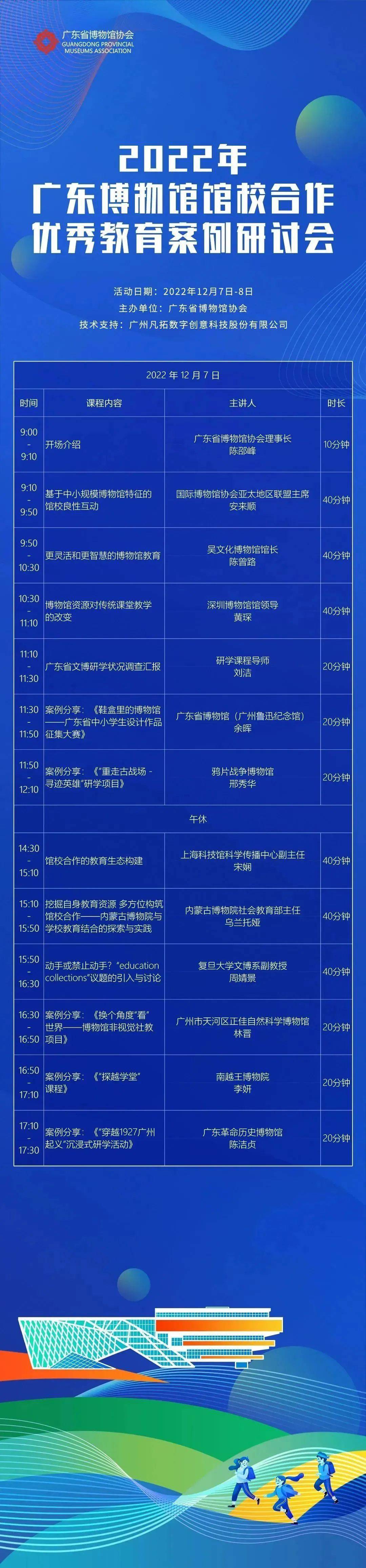 2022年12月7-8日,广东省博物馆协会将在线上举办“2022年广东博物馆馆校合作优秀教育案例研讨会”,为期2天,邀请来自高校、教育和文博系统三个领域的专家及“2022年广东博物馆馆校合作优秀教育项目”获奖单位代表,与来自全省各地博物馆和教育系统的从业人员进行汇报交流,从三方角度出发,共同探讨如何有效推动馆校合作的进一步发展。