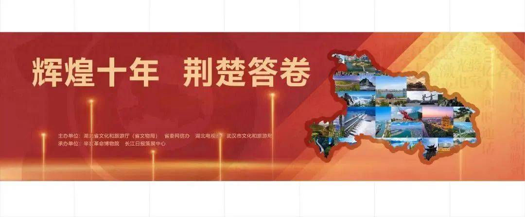 为深入贯彻落实宣传党的二十大精神,展示湖北上下践行习近平总书记5次视察湖北重要讲话精神和新时代十年湖北取得的各项成就和荆楚大地发生的深刻变化,由湖北省文化和旅游厅(省文物局)、省委网信办、湖北电视台和武汉市文化和旅游局主办,辛亥革命博物院承办的“辉煌十年 荆楚答卷”展览于2022年12月29日上午10点在辛亥革命博物院南区一楼多功能展厅开展。
