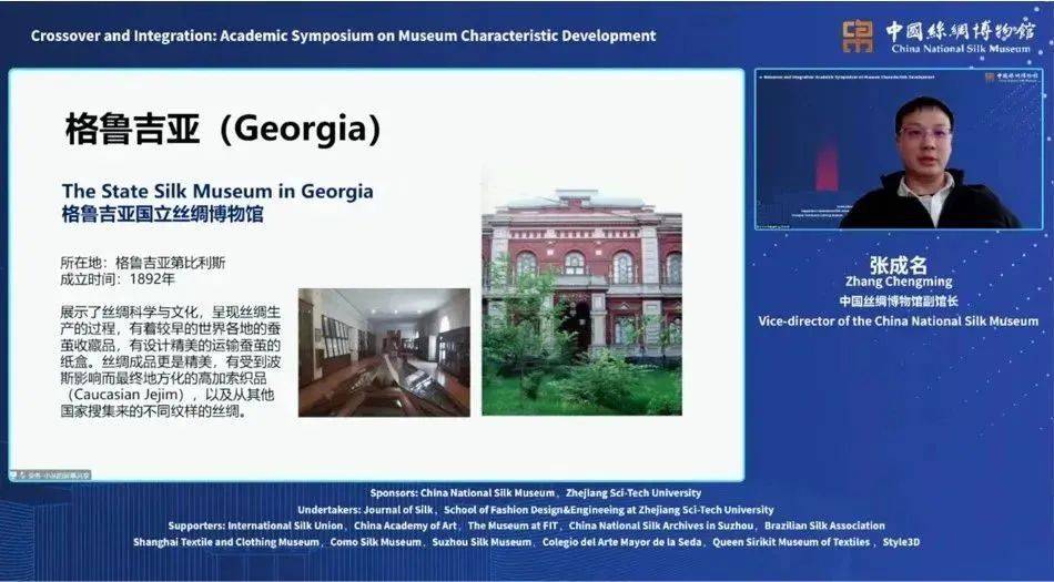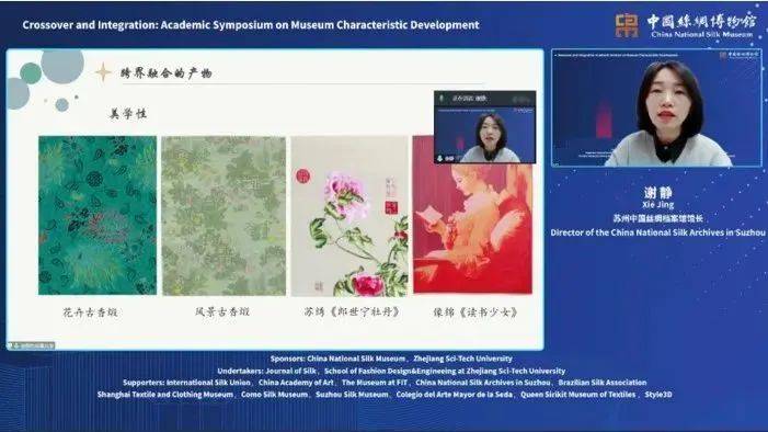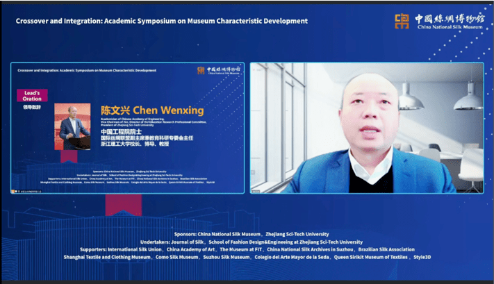 本次会议由中国丝绸博物馆与浙江理工大学联合主办,《丝绸》杂志社、浙江理工大学服装学院承办,并得到了国际丝绸联盟、中国美术学院、纽约时装学院博物馆、苏州中国丝绸档案馆、上海纺织服饰博物馆、巴西丝绸协会、意大利科莫丝绸博物馆、苏州丝绸博物馆、西班牙瓦伦西亚丝绸博物馆、泰国诗丽吉王后纺织博物馆、浙江凌迪数字科技有限公司等国内外知名博物馆和行业的支持。共有来自中国、美国、意大利、巴西、西班牙、泰国等国家的100余位学者和代表通过腾讯会议参会,其中12位专家学者在线上进行主题演讲,2万余人通过新浪微博和直播平台观看会议。