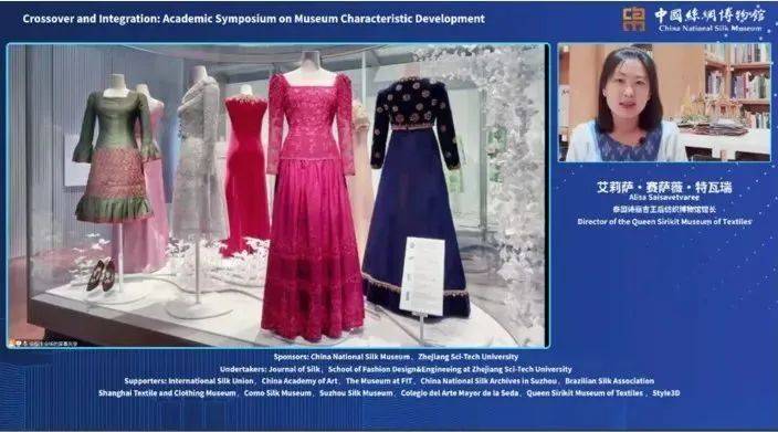 泰国诗丽吉王后纺织博物馆策展人Alisa Saisavetvaree(艾莉萨·赛萨薇·特瓦瑞)的报告题目是《共享与创新:泰国诗丽吉王后纺织博物馆的特色发展路径》。演讲内容主要涉及诗丽吉王后纺织博物馆的成立背景、运营特色等方面。该馆在诗丽吉王后的支持下建设而成,以皇室藏品为经典,汇聚收藏、展示、保存、教育等功能。同时,诗丽吉王后博物馆还注重开拓国际学术视野,近几年与中国丝绸博物馆、美国大都会艺术博物馆纺织品保护部等相关机构开展了密切合作。2012年博物馆正式开放,十余年来积极开设各项展览,向世界展示皇家生活,宣传泰国纺织文化。