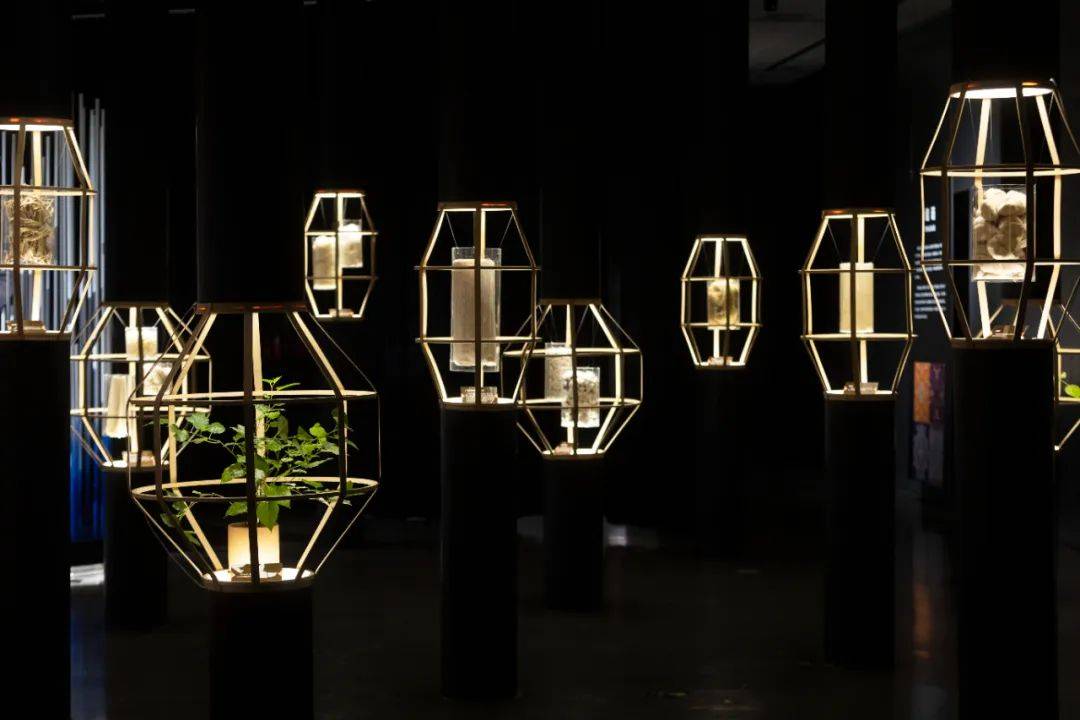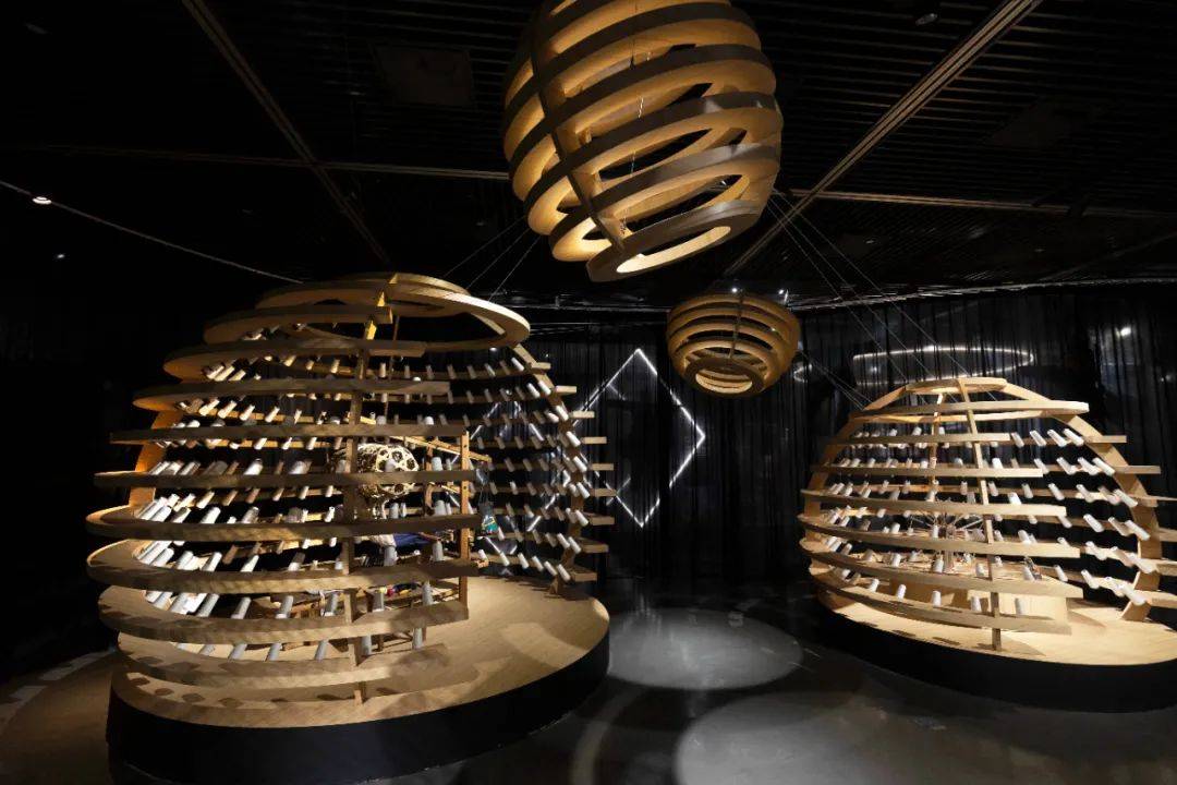 纺织的经纬工序,表达文化创造的根源。以线构成纺织意象空间、线轴作为创作根源,表达纺织机为编织的起源,犹如宇宙万物空间之中,探索从自然到“人文化成”的演变。