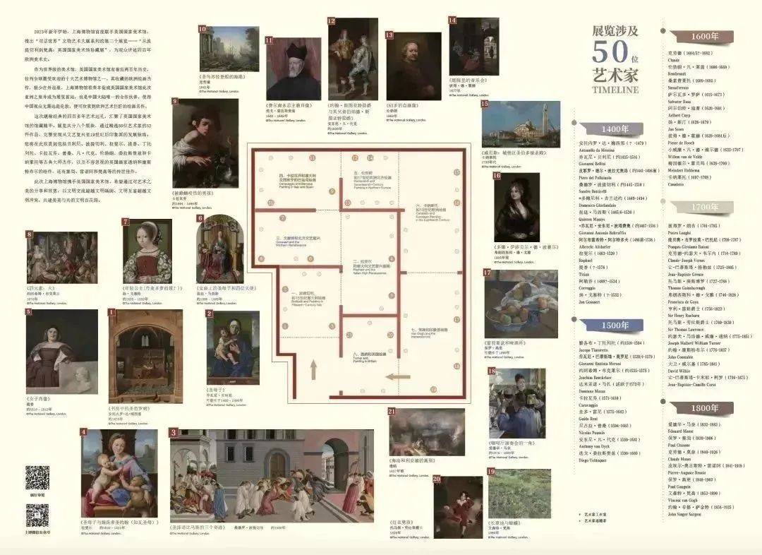 上海博物馆携手英国国家美术馆于2023年1月17日至5月7日,举办“从波提切利到梵高——英国国家美术馆珍藏展”(上海博物馆一楼第一展览厅)。展览以52件欧洲大师的油画杰作,为观众讲述四百年经典的欧洲绘画史。