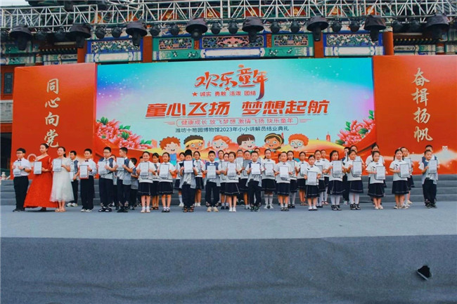 潍坊市博物馆专职副书记王国栋为2022年小小讲解员颁发明星小小讲解员证书
