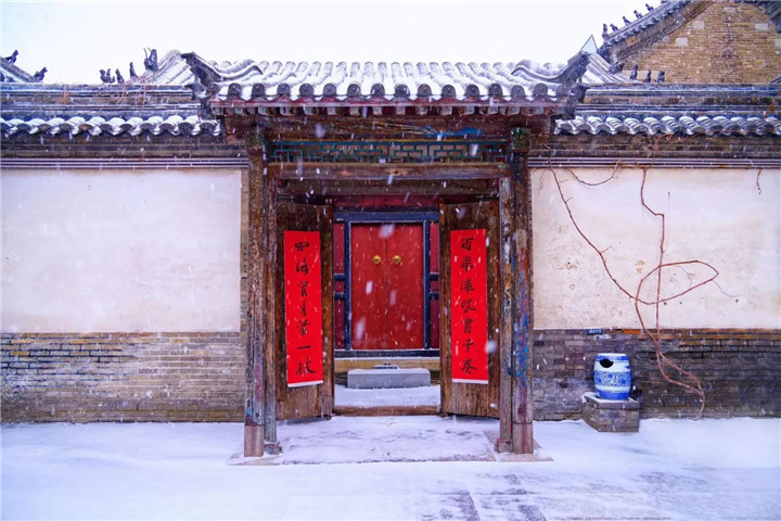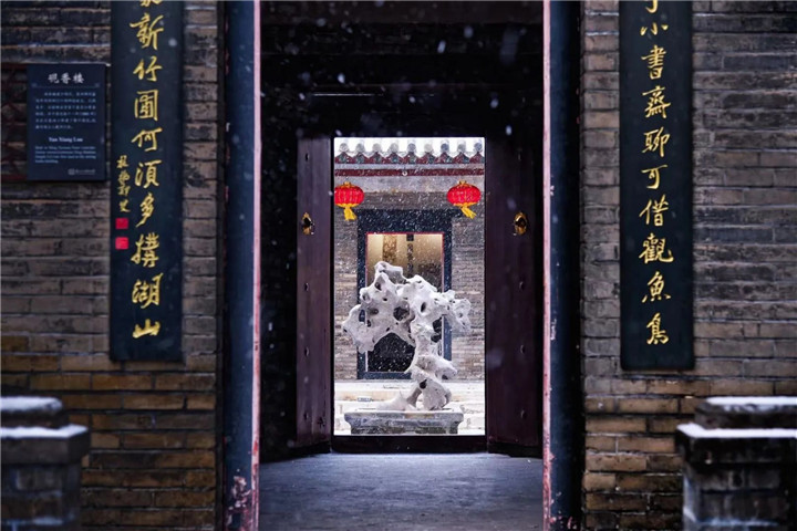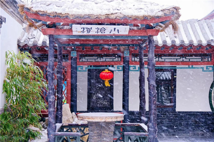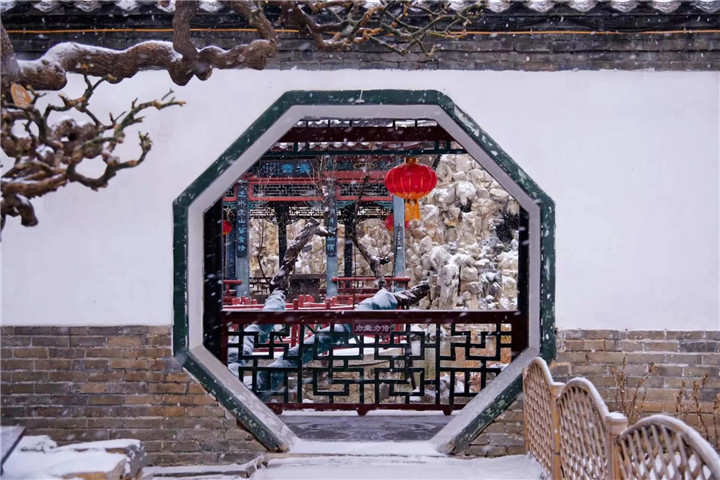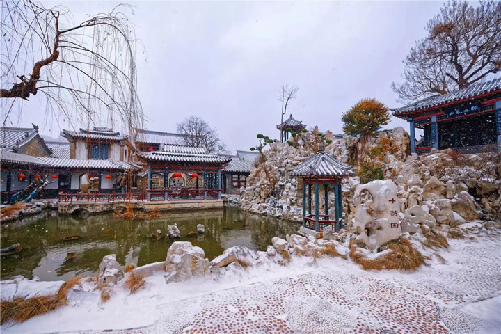 此组照片共5张,组图选用中景、远景拍摄,古城漫天雪花,如蝴蝶纷飞,展现十笏园的冬日之美。