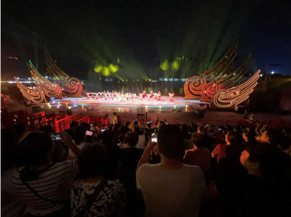 观众在殷墟国家考古遗址公园观看演出