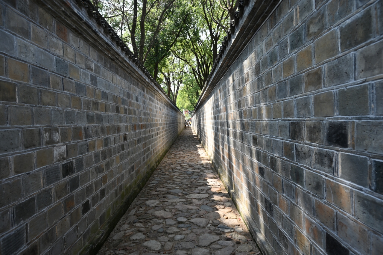 大树荫荫连天碧,青砖黛瓦碎石路,几乎是六尺巷的全部。