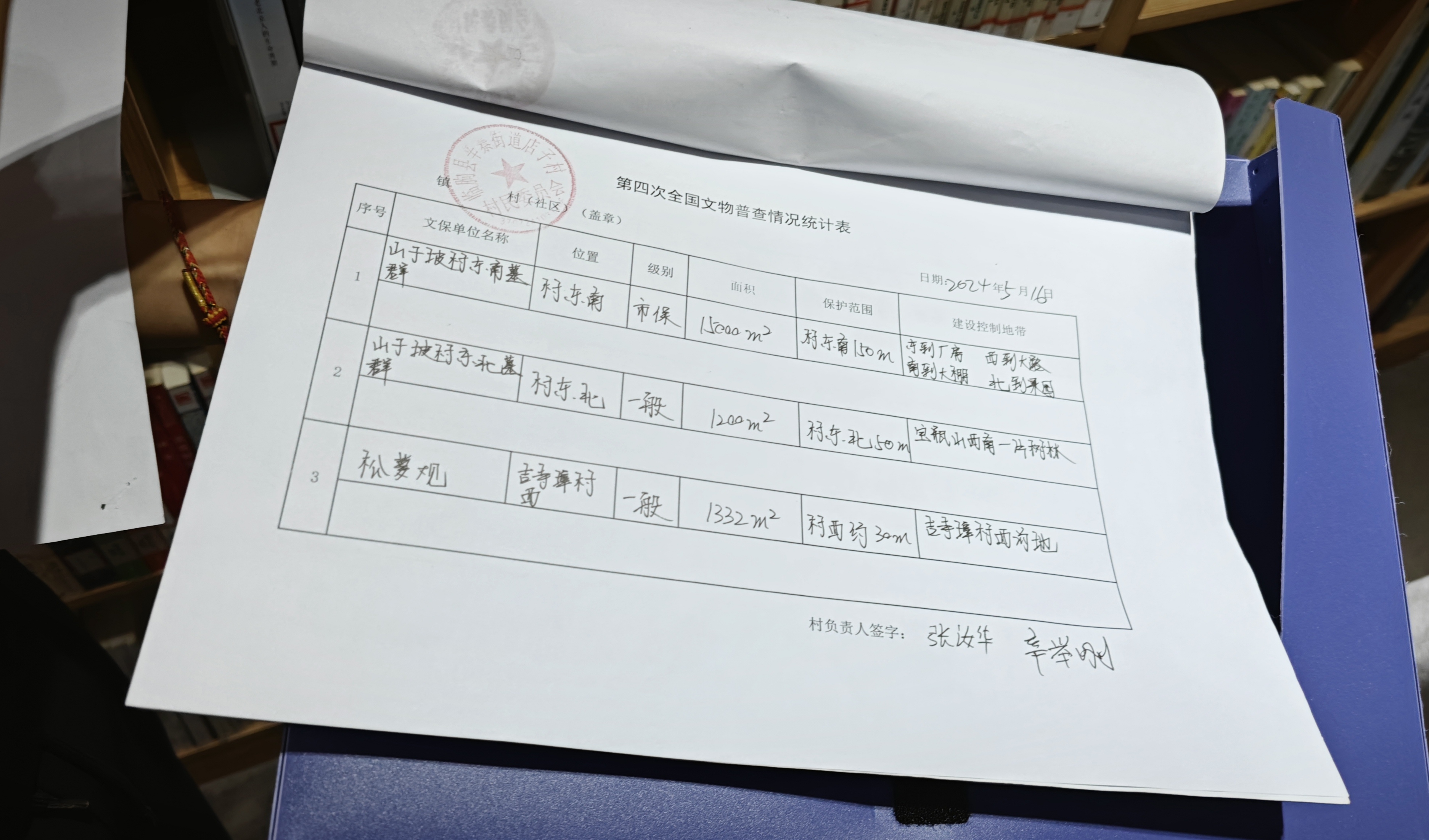 在这里,普查队员刘玉姣为我们展示了一份各镇街第四次全国文物普查情况统计表。在实地调查的过程中,普查队同时对文物保护单位的“四有”工作落实情况进行检查登记,确保文物安全直接责任人制度、文物巡查员制度在基层发挥作用。爱惜人力,提升效率,他们努力让“四普”的调查价值最大化。