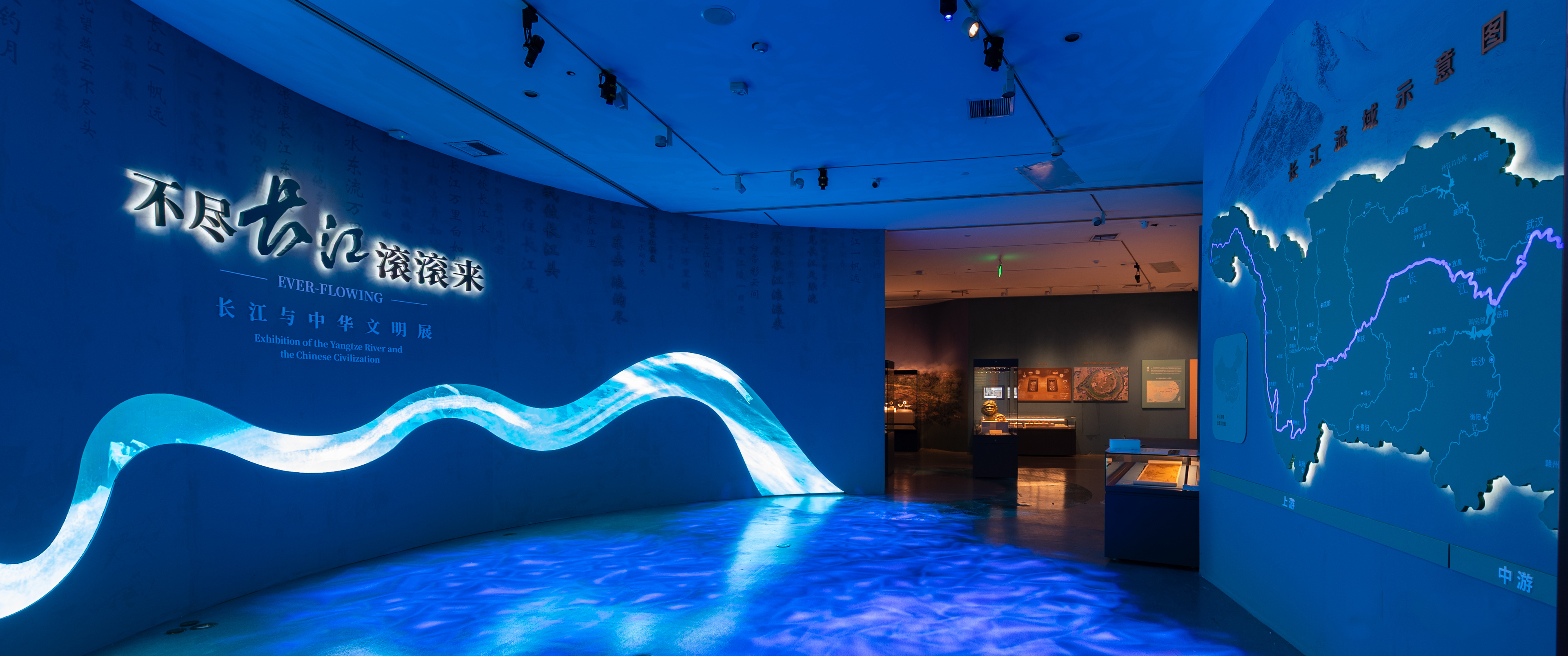 展览前序为“诗咏长江”,选取历史上反映长江自然地理、社会生活、文化传统、精神风貌、交流交往的100首诗词名句,以数字、光影、音效等多种形式,营造长江浩丽图景;后记为“史诗行进”,节录近现代以来发生在长江流域的反映中华民族觉醒、抗争、复兴历程的30至50个历史事件,以数字、光影、音效等形式,展现走向未来的意境。
