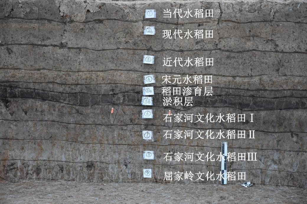 在遗址西北部还发现了早期水稻田,面积约100平方米,呈不规则圆形。该区域叠压从当代、近代到宋元时期的水稻田,最下层为石家河文化和屈家岭文化的水稻田。这一发现为研究鸡叫城遗址及周边的稻作农业提供了重要材料。稻田土中检测出高密度水稻植硅石——每克土中不少于1万粒,符合国际学术界对古代水稻田的判定标准。