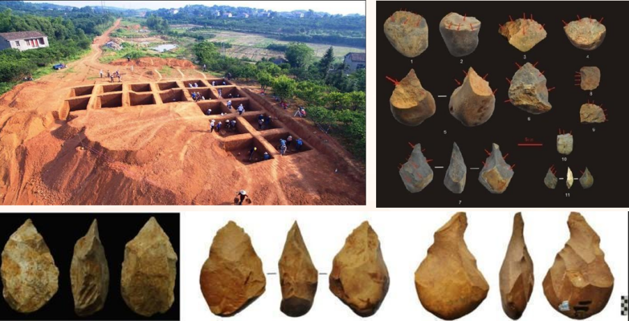 沅江赤山岛发掘现场及出土石器(距今50—20万年)