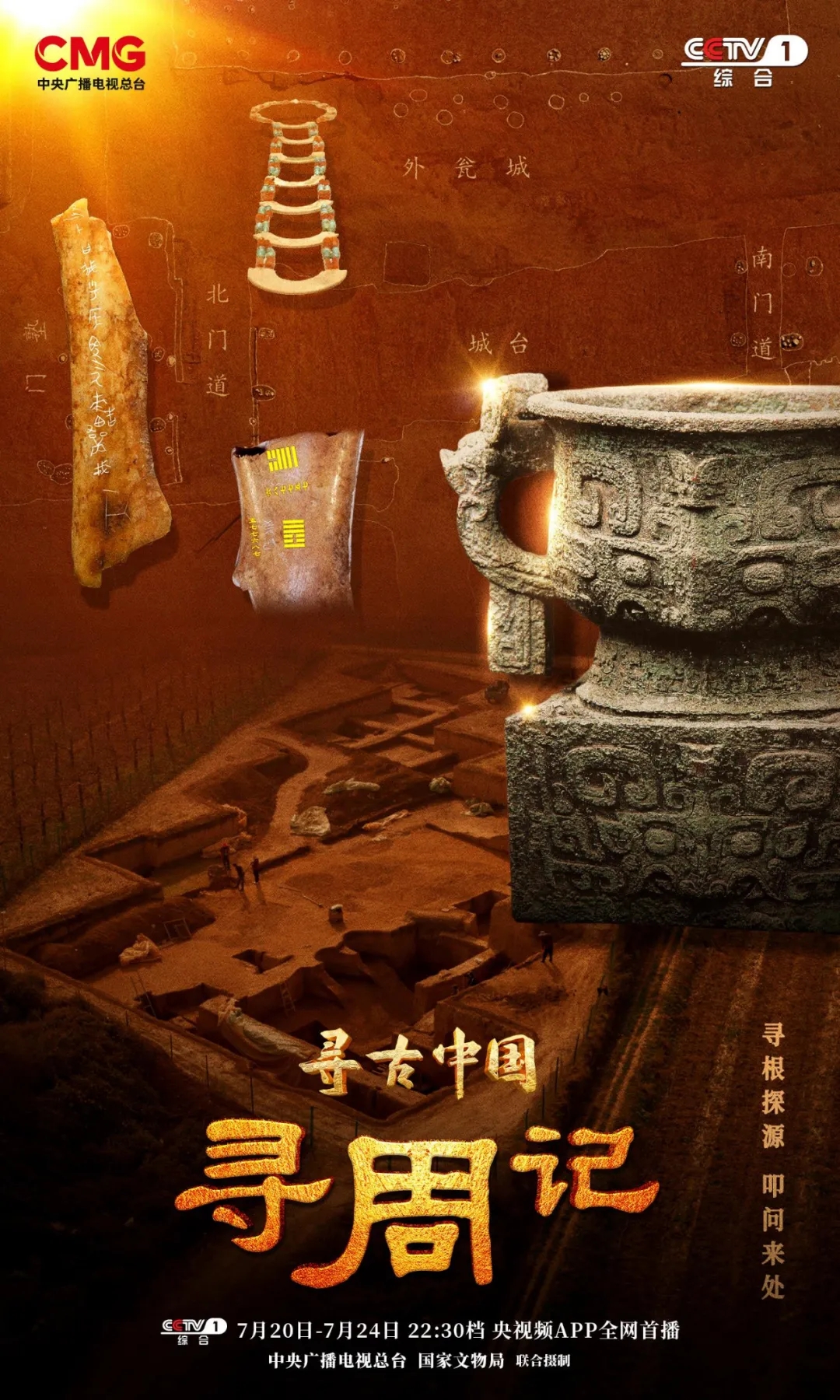 央视网等总台新媒体平台,于7月20日起,与总台央视综合频道(CCTV-1)同步播出《寻古中国·寻周记》。