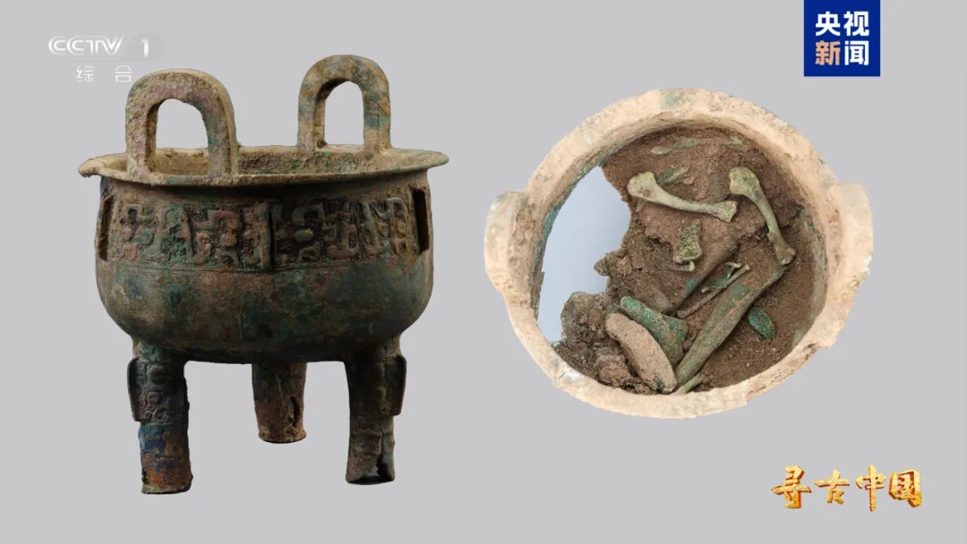 △周原遗址昔鸡墓出土盛有动物骨骼的鼎
