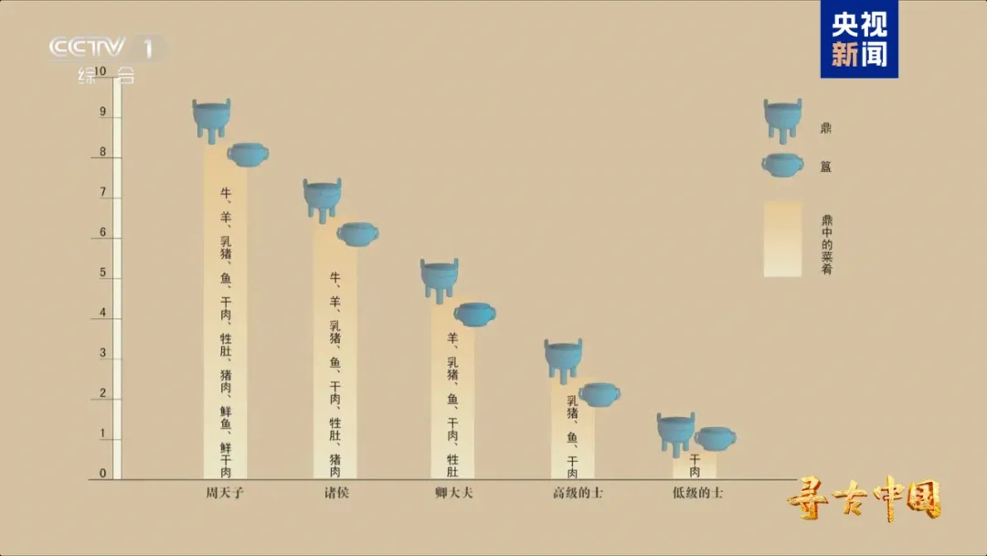 “以礼定序、以乐和众”的礼乐制度,体现在周朝政治与社会的方方面面。宫门三进与车马成列,彰显等级秩序;“天子九鼎、诸侯七鼎”,昭示君臣威仪;“佩玉修德”“出礼入刑”,规范道德人伦与法律约束……节目展示这些周礼面貌的同时,还通过“一鼎多牲”器物组合揭示周代祭祀秩序;通过河南平顶山应国墓地出土的柞伯簋,呈现西周“大射礼”;通过何尊铭文中的“德”字在甲骨文字形基础上增加“心”字底的细节,窥见周人特别强调“有心之德”。众多考古发现,让周代礼乐制度变得清晰可见。