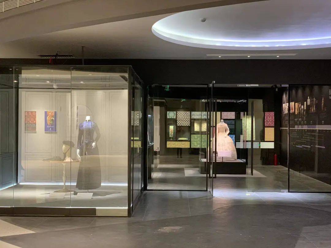 在杭州市文旅局的牵线下,在浙江省文物局的支持和指导下,我们迅速和杭州大厦高层达成了共识,由杭州大厦拿出新B座5层的500多平方米的两个空间,引入中国丝绸博物馆时装板块内容,在这里举办国丝时尚博物馆。而国丝则将其当作是自己的一个小型分馆,设立了中外时装、国丝之窗和时尚教室三个区域,在保证安全的前提下,每年举办四个时装展览,四个图片展览,每周推出不少于一期以互动为主的时尚课程。开幕时推出的首期展览是“时尚的轮廓”,是一个西方时装简史的展览,有80余件套自18-20世纪的中外时装藏品参展。同时还有“锦地开光:国丝30年展览系列海报展”。在时尚教室里,我们将和浙江理工大学服装学院联手推出首月4次课程:时尚的秘密、Dior的腰与褶、女神气质、高跟鞋的前生今世等讲座以及银饰手工等体验课程。