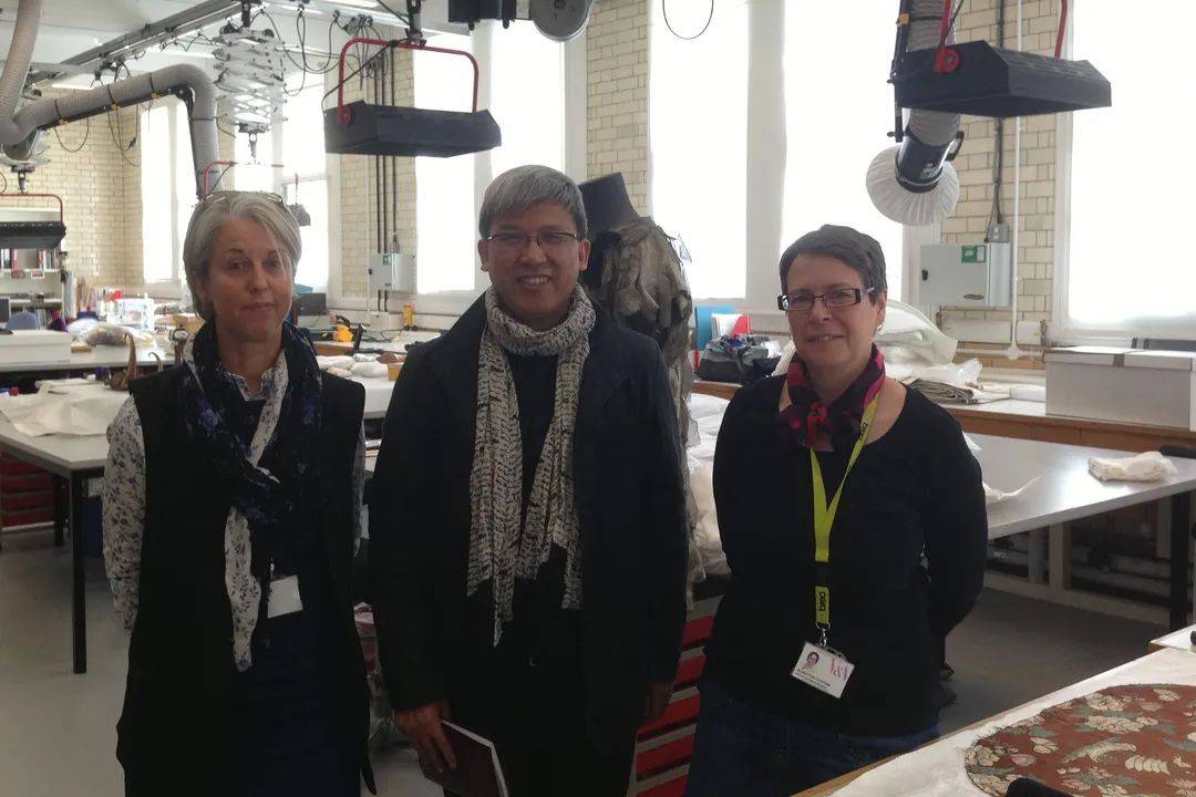 在这其中,英国的V&A可以算是其中的引领者,也是我们做时尚博物馆的一个可以对标的标杆。历年来,我们和V&A进行了大量的合作。早期的合作虽在2006年就已经开始,但这主要是关于敦煌丝绸研究的。2013年7月,我们已经收藏了大量西方时装,所以我就和周旸前去V&A学习纺织品和时装的保护修复。2014年4月,我自己又特别再去V&A的时装库房参观考察学习,为我们建设西方时装收藏做好库房准备。到2014年12月,我们又派出了张国伟和徐姗禾俩人前去V&A,再学习了两个月,其中涉及西方时装的各个方面,包括分类、定名、登录、系统、存放、管理等,因为这和中国服装文物的管理和研究,可以说就是两个体系,必须重新学习。