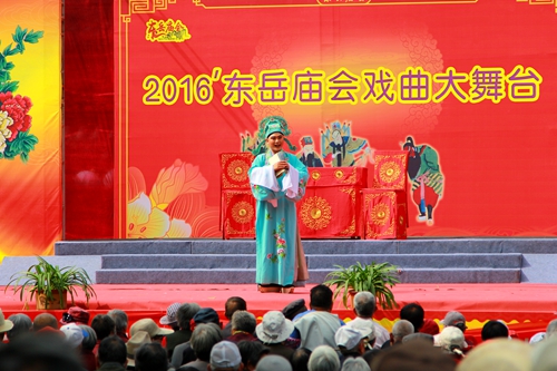 在后寝宫前的东岳庙会大舞台上, COSPLAY、童话剧、曲艺、瑜伽等不同形式的表演,让大家共同关注并参与到活动中。