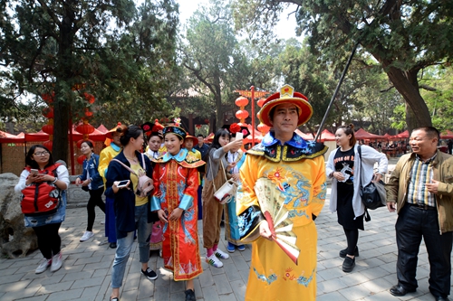 东御座皇帝行宫,乾隆爷正襟危坐,气派威严,院内巡游,与游客亲和互动。
