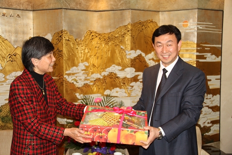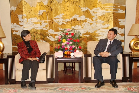 4月1日下午,市委副书记、市长王云鹏,市委常委、副市长刘卫东在御座宾馆会见了来泰安出席“2012泰山东岳庙会暨海峡两岸民俗文化交流周”活动的中国国民党中央评议委员会主席团主席叶金凤及台东市市长陈建阁一行;泰山景区党工委书记谭业刚,市政府秘书长张平,市政府副秘书长张耀,市台办主任李起峰及市政府有关部门、单位负责同志参加会见。