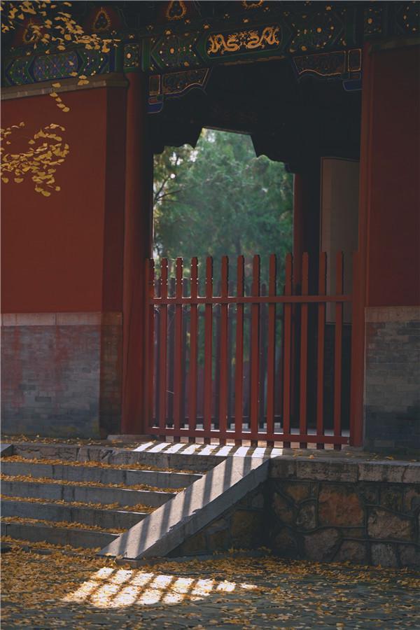 初冬游岱庙,嗅到的是绚烂的不输深秋的味道,色彩斑斓在这里体现得淋漓尽致。初冬的寒气使得树的颜色又加深不少,在慵懒阳光里缓缓舒展身姿。泛红的树叶与银杏叶交织,与古建筑相融,在暖阳下演奏出一曲别有韵味的交响乐。