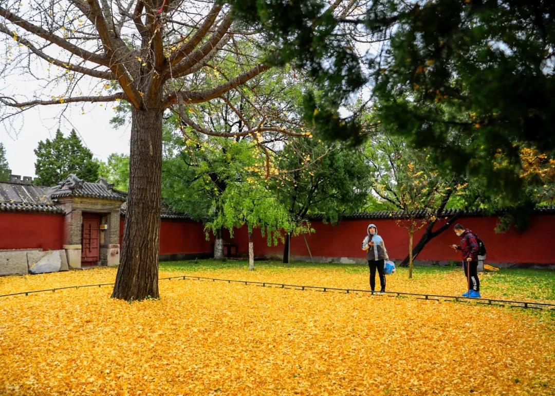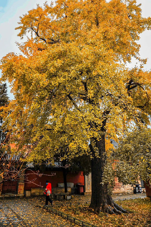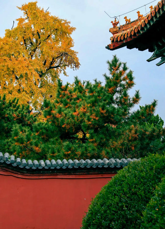 走进岱庙,空气中还能嗅到秋遗留的味道,初冬暖阳的照耀下,满目金色芳华。千年古庙内,光线色彩交织,那映在红墙上的斑驳树影和金黄色银杏树叶让庙宇更显古朴庄严,带来绝美风光的同时,绚烂了整个初冬。
