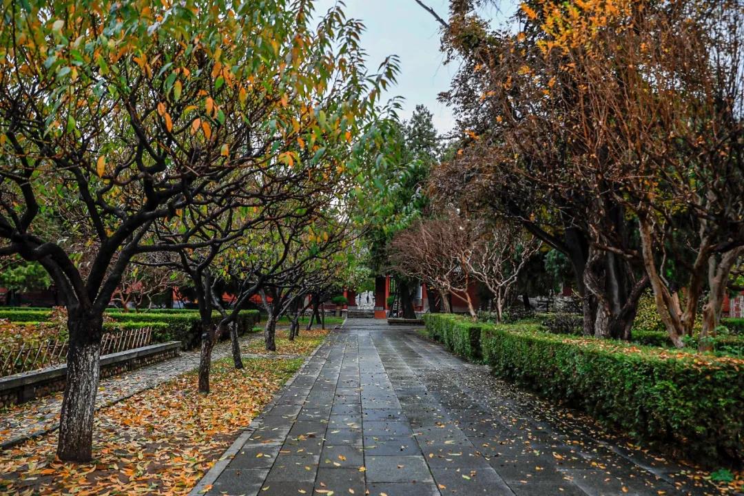 初冬时节走进岱庙,片片银杏叶随寒风飘落,上演着满地尽是“黄金甲”的美景,若仔细看,一片片金黄的银杏叶在阳光中飞舞,似一幅黄色水墨画一般迷人,与周围青翠的松柏的朱红的墙壁窃窃私语,共同奏响了一曲初冬的赞歌。
