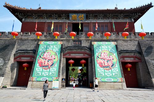 配天门前,端午史话陈列宣传版面,让人们进一步了解端午的民俗文化特色,感受民俗风情。