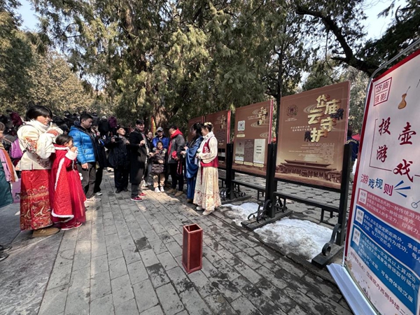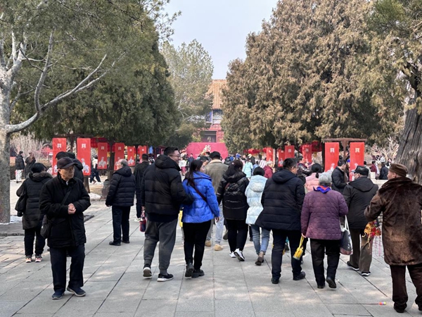 天贶殿前的“新年祝福”语林留言、扶桑石处“走福路、绕福石、摸福树”游戏、春节非遗艺创文化市集、唐槐院民俗节、……岱庙内丰富多彩的文化节庆活动,让游客流连忘返,沉浸式体验着传统文化的魅力,积蓄起新的一年蓬勃向上、龙腾虎跃的不竭力量。