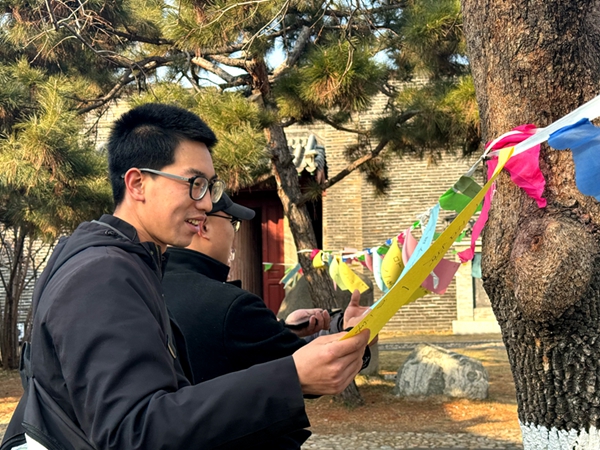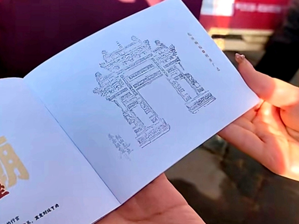 “游岱庙福地,打卡集福气”活动同样吸引游客纷纷参与。他们满怀热情,穿梭于岱庙的各个角落,兴致勃勃地寻找打卡点,认真收集“健康福、学业福、事业福、财运福、家庭福”五福印章,而参观了天贶殿壁画的游客更是收获额外惊喜,成功领取“好运福”印章。集齐六福的游客满心欢喜地领取精美礼品,尽情感受着满满的福气。游客激动地表示,这样的活动不仅为游览增添了许多乐趣,更让优秀传统文化以生动鲜活的方式得到传承与发扬。