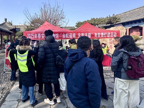 为丰富市民和游客元宵节文化生活,营造喜庆祥和、文明温馨的旅游环境,泰安市博物馆于元宵节当天在岱庙景区精心策划举办了“金蛇迎祥 元宵送福”系列节庆活动,以优秀传统文化为核心,精彩互动环节为纽带,为市民和游客奉上了一场集泰山文化、元宵习俗、趣味参与于一体的文化旅游新体验。