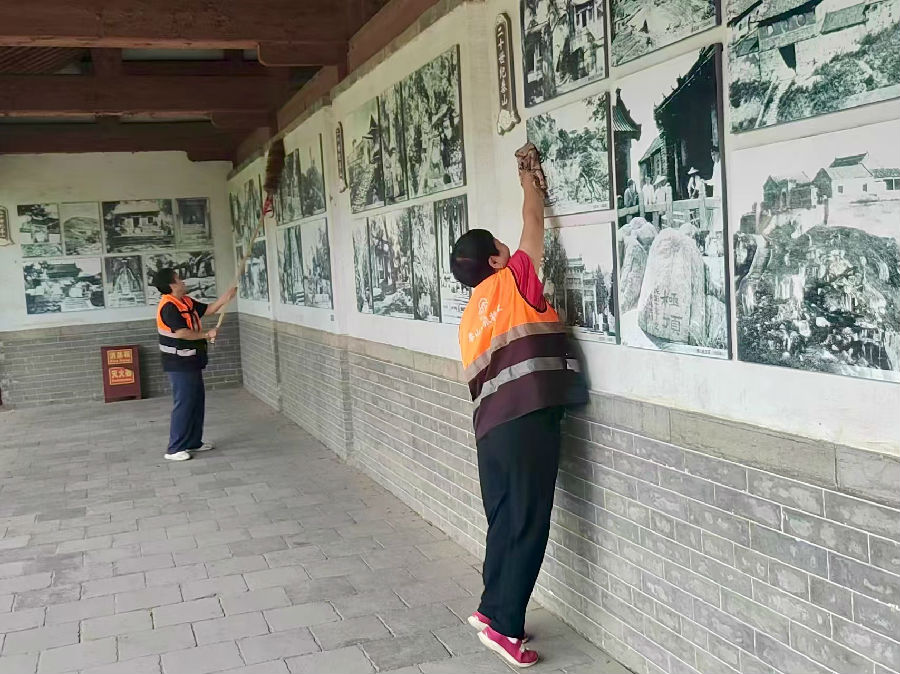 为以最优环境迎接游客,景区在节前便启动重点区域精细化清理行动,针对仁安门老照片展区、东御座垂花门以及院内所有连廊与门廊,组织人员开展深度清洁作业。清理过程中,工作人员逐区域排查、逐角落清扫,确保游览区、休息区、展示区无灰尘堆积、无浮土残留、无蜘蛛网滋生,真正实现“目之所及皆洁净”的目标。