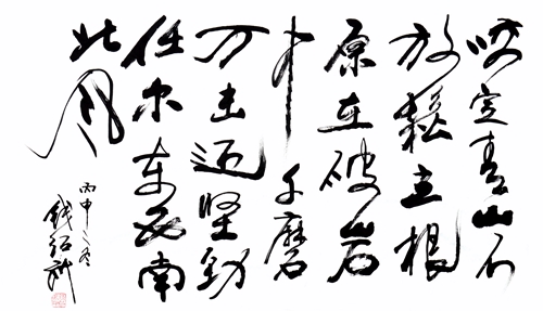 钱绍武,我国著名的雕塑家、书法家、画家,有“中国雕塑第一人”的称号。主要书法作品《望岳》诗9米×3米,曾悬挂于中共中央政治局会议厅。《泰山颂》10米×3米长期挂于中央政治局会议厅壁,该诗作者为北大教授杨辛先生,诗之后两句为钱先生所改。