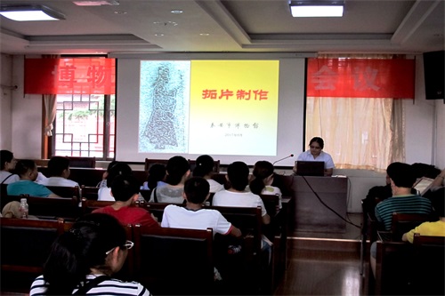 “拓片体验”活动是我馆推出的一个新的社教活动项目,为做好本次活动,我馆工作人员在前期做了大量的准备工作,一是活动方案的制定及策划实施;二是硬件准备:手工制作了拓包近30个,购买了宣纸、墨汁、鬃刷等工具;三是PPT课件及视频的制作;四是场地准备。