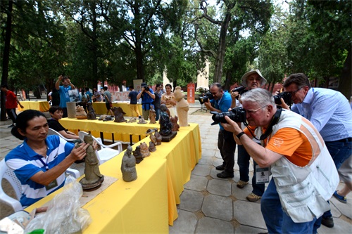 千年古庙深厚的文化底蕴引起了嘉宾们的浓厚兴趣。摄影师们分为三组,对摄影书画展示及非遗文化展演、泰山特色沙画表演、泰山禅茶表演进行了拍摄,并共同考察拍摄了东岳太极表演、泰山皮影表演、皮影制作、泰山泥塑以及泰山石敢当文化等非遗文化展演。博大精深的中国传统文化、磅礴厚重的平安泰山文化,让摄影师们赞叹不已,用手中的相机不停地拍着,用最美的镜头记录下这美好的一切。