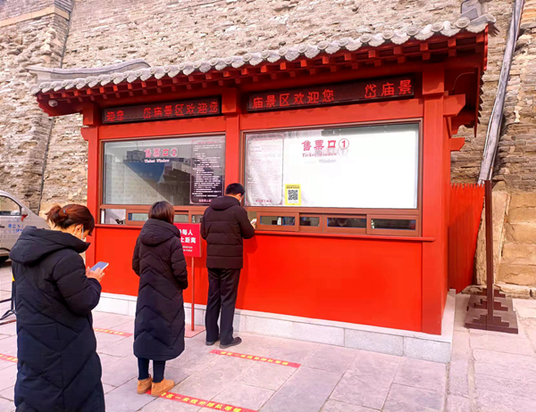博物馆在坚持以人为本服务理念,从严强化常态化疫情防控的基础上,充分考虑更好地为游客提供旅游服务。新年来临之际,西移改建了岱庙南门售票房,顺应游客的视角,扩大了票房面积,将原先的东向窗口改为南向,售票窗口由原先的1个改为 2个,游客在购票时能够更加方便快捷、更好地保持安全距离。