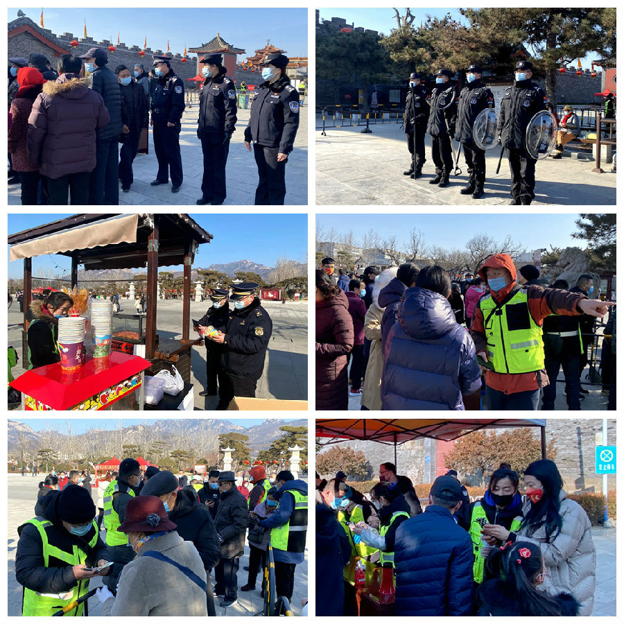 游岱庙是许多泰安市民和游客过大年的首选祈福地和出游地。按照疫情防控部署和“限量、预约、错峰”要求,岱庙初一、初二正常售票,针对这一新情况,泰山景区提前分析研判、科学统筹布局,节日期间调动多方力量驻守岱庙景区一线,全力协助配合博物馆做好旅游秩序维护工作,圆满实现旅游秩序安全、平稳、有序的工作目标,营造了喜庆祥和的节日旅游氛围。