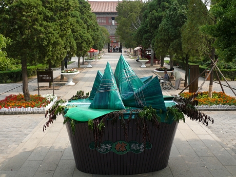 为丰富节日游览内容,增加游客参与性和节日趣味性,特别在岱庙阁老池设置了两个互动项目,“现场包粽子大赛”和“庆端午立鸡蛋趣味比赛”。