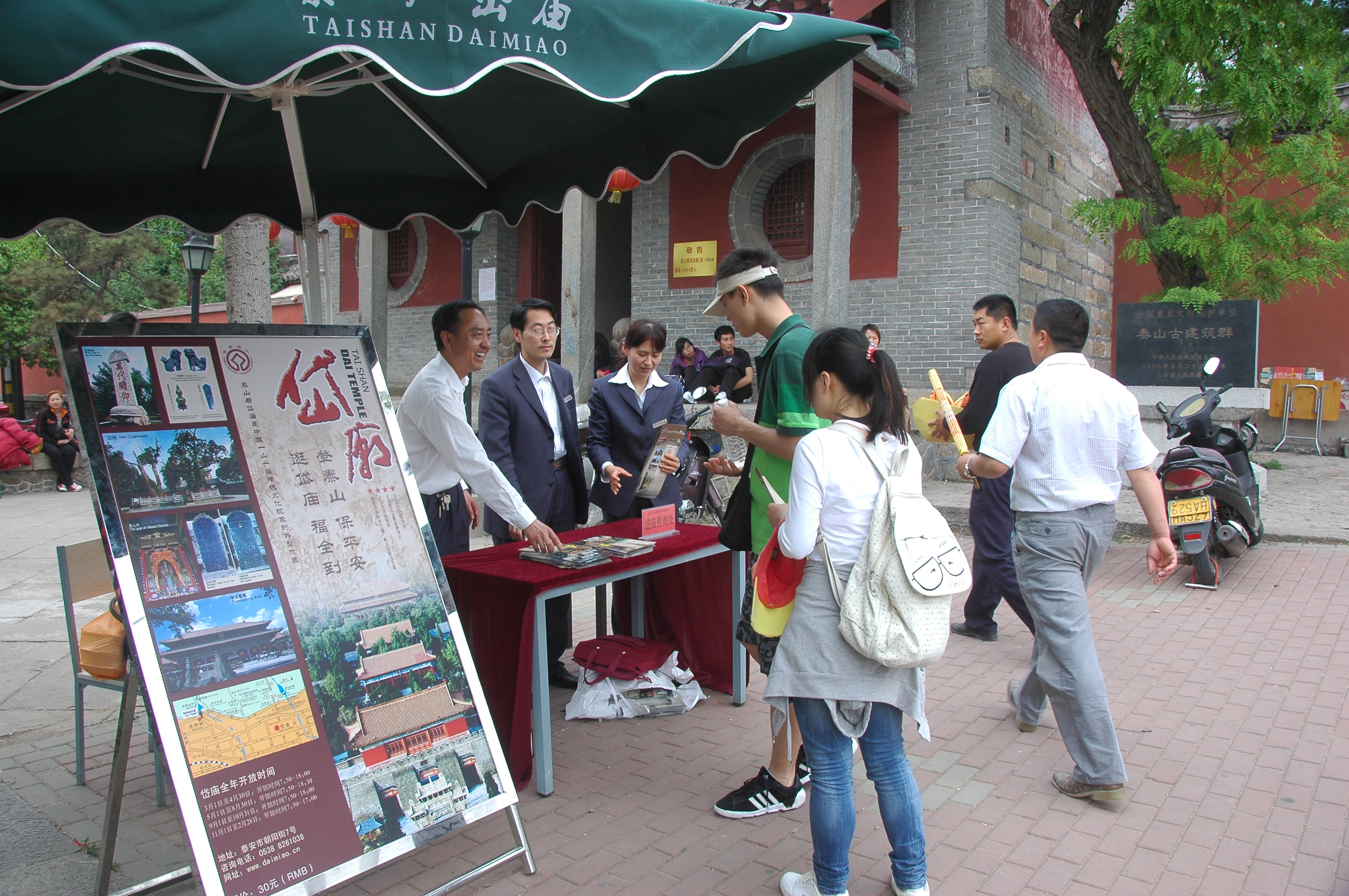 树立“以人为本,全心全意为游客服务”的指导思想,加强对外宣传力度,在天外村、红门、岱庙南、北门分别设立旅游咨询服务台,进行游客咨询服务,科学设计了游客调查问卷,并深入游客中细致调研,聆听游客心声,及时为游客排忧解难,及时改进工作。