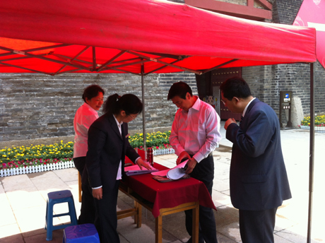 谭书记在博物馆主要负责同志陪同下,先后实地察看配天门朝鲜油画展览活动、游客问卷调查及现场管理服务工作, 对岱庙各项准备工作表示满意,并要求博物馆按照党工委确立的“安全、文明、和谐、秩序、效益”的工作目标和假日工作方案总体部署,采取有效措施,强化假日工作力度,提升服务质量和旅游满意度,努力实现更好的效益。