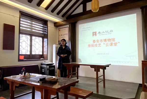 与雷锋学校连线,共同开展了泰安市博物馆捶拓技艺“云课堂”,由博物馆工作人员线上授课,通过深入浅出的解说,介绍捶拓传统技艺的历史及价值,并现场演示制作方法,让孩子们感受传统捶拓技艺的魅力。