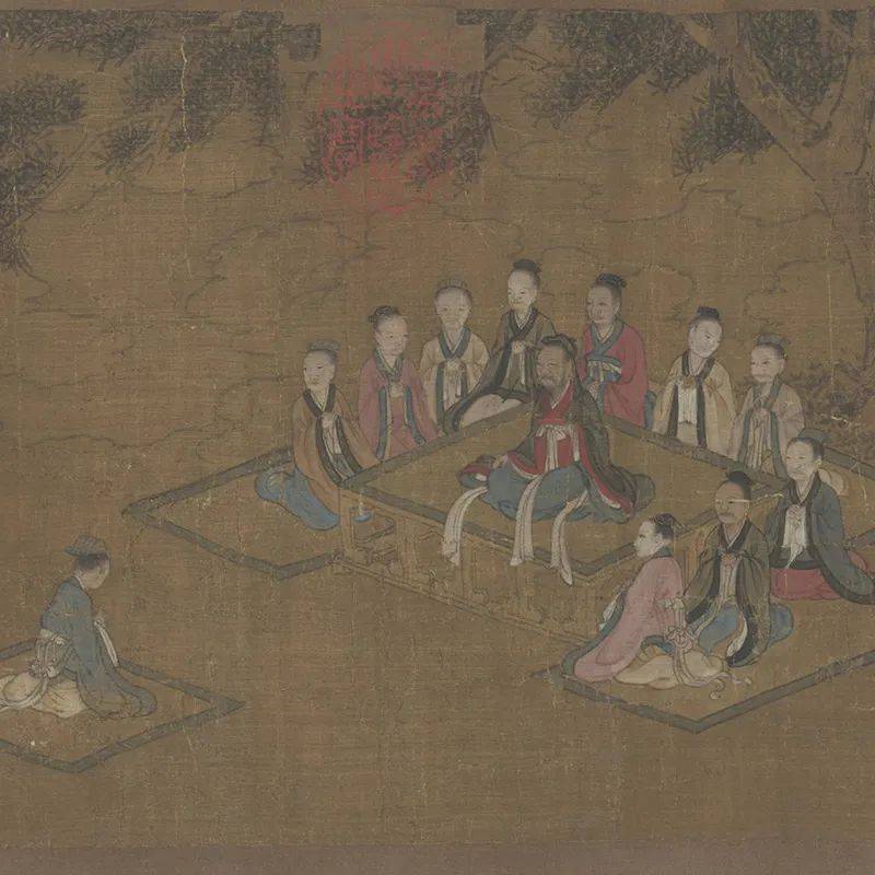这幅作品就是根据《孝经》绘制,以右边文字,左边图画的形式展示了《孝经》十八章的内容,是不是很像一幅连环画?清代的《庚子销夏记》和《石渠宝笈初编》都记载过这幅画卷,并且都认为它是由唐代的书法家褚遂良和画家阎立本合作完成的。不过,现在经过专家们鉴定,这幅画其实是南宋的。