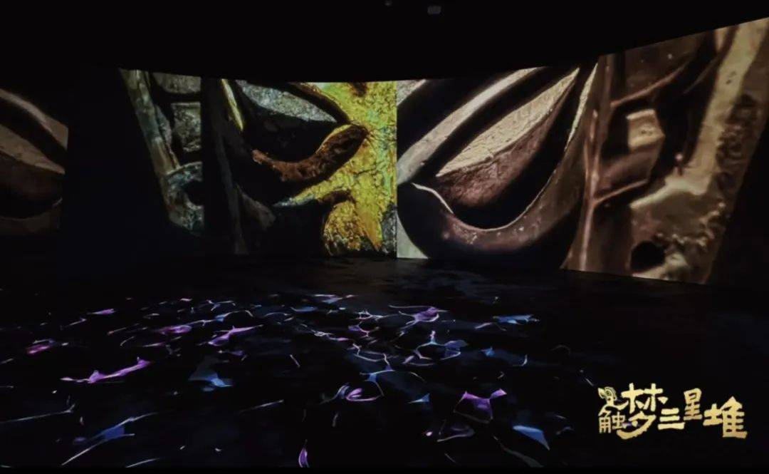 “触梦”部分以科技强劲赋能文化,通过12K超高清视频技术微距拍摄三星堆经典文物,辅以原创主题音乐和绘画性艺术表达,让三星堆文化跨越国别、穿越古今,以更加清晰、鲜活、生动的姿态亲临观众身侧,突出了三星堆文化的神秘感、浪漫感,观众通过全沉浸式切身体验和感知,加深对于三星堆文化的认识和领悟,引发共鸣和思考。