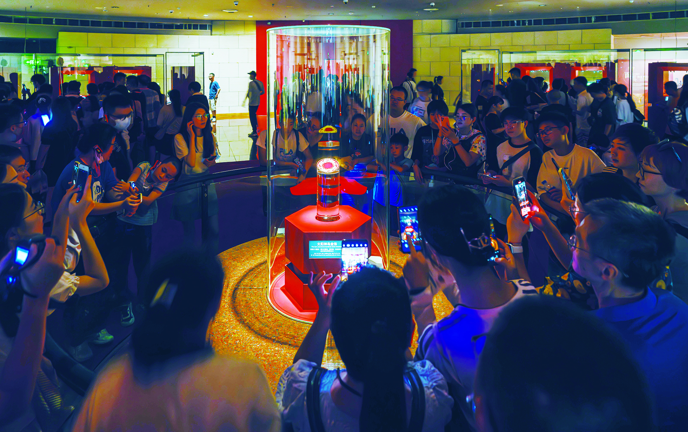 成都金沙遗址博物馆还携手竞技类手游,发布以古蜀金沙文化为灵感而设计的皮肤“海月-金乌负日”,吸引许多玩家对金沙遗址产生浓厚兴趣。博物馆文创部负责人邱扬介绍,从《金沙》音乐剧,到博物馆主题飞机“金沙号”,再到与火锅品牌的首次跨界联名,金沙一直在致力于拓展古蜀文明的内涵外延。