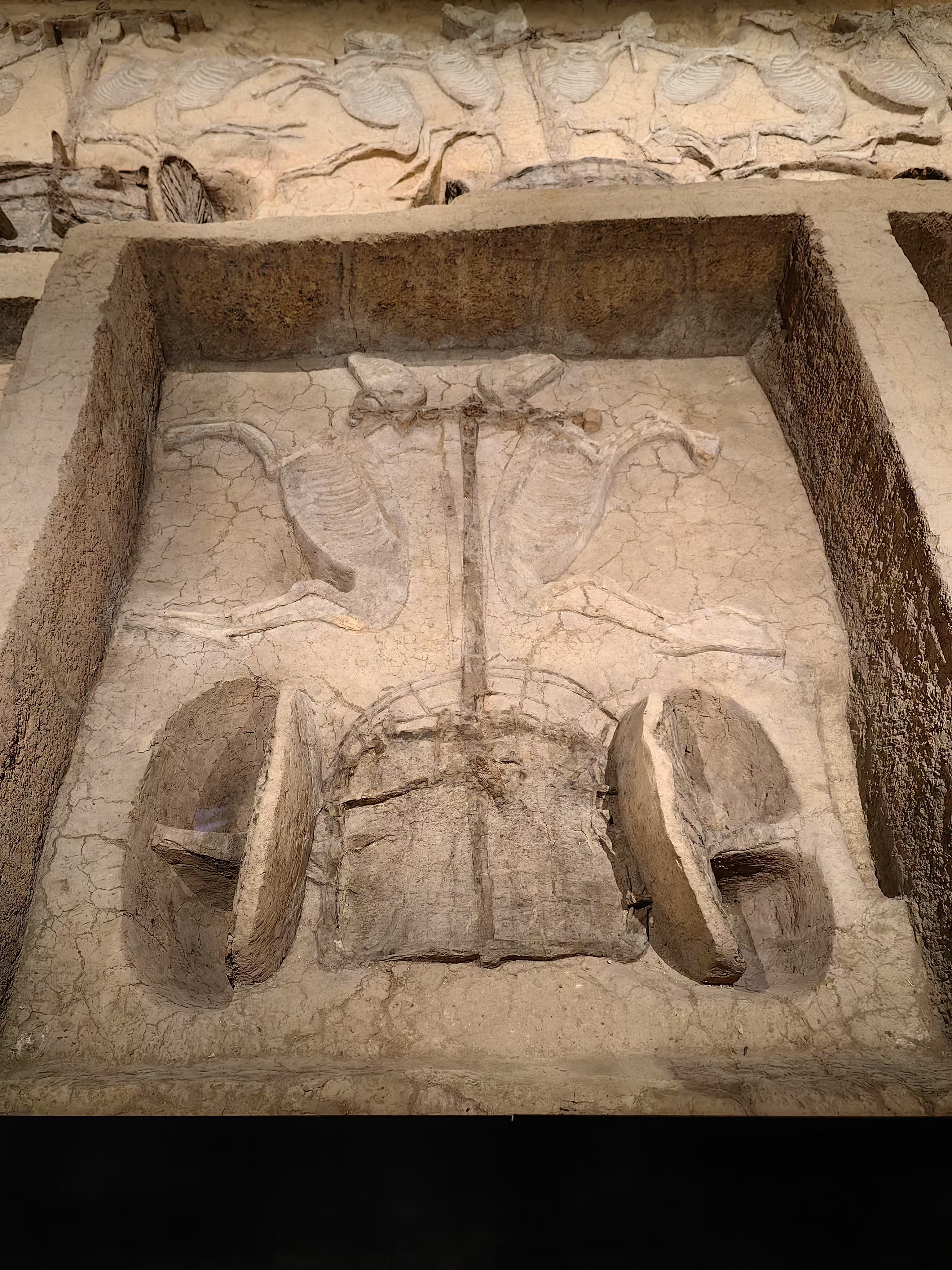 走进车马阵展厅,抬眼望去,四十座车马坑所组成的车马阵蔚为壮观,楚国“千乘之国”的国之威势,打破时间空间限制,展现在观众面前。