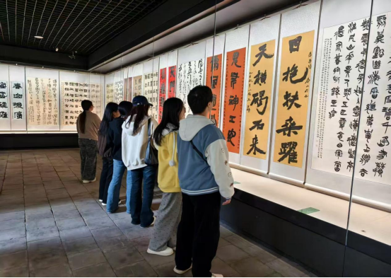 展陈之地,古柏苍郁,廊庑清幽。一幅幅开张大气的大字书法,与岱庙千年古建俯仰相望、气韵相合,构筑出沉浸式的东方美学空间。观者漫步其间,赏笔墨之妙,品碑刻之韵,于一纸一墨间触摸书法非遗的温度,于一撇一捺中读懂泰山文脉的厚重,真正以书法为桥,以遗产为魂,让千年文物焕发生机,让悠悠文脉可感可触。